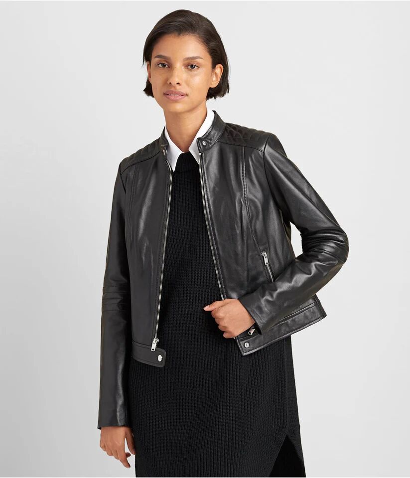 Rev up your style with the Women’s Black Leather Biker Jacket. Crafted from premium leather, this jacket embodies both toughness and sophistication. The classic black color adds a timeless appeal, making it a versatile addition to any wardrobe. Perfect for casual outings or a night on the town, this biker jacket offers a flattering fit and edgy look. Designed for both comfort and durability, it features iconic biker details like zippers and a sleek silhouette. Shop now to elevate your fashion game with this must-have piece that seamlessly blends fashion and functionality.